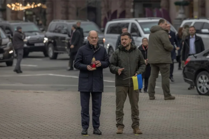 Cancelarul german Olaf Scholz efectua luni, la Kiev, o vizită-surpriză prin care-şi reafirmă susţinerea şi oferă un nou ajutor Ucrainei, care-i priveşte cu suspiciune reluarea contactului cu Vladimir Putin şi ideea de a-i obliga pe beligeranţi să negocieze, relatează AFP.