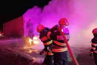 Incendiu la cabina unui TIR cu produse de panificaţie, în judeţul Tulcea / Şoferul a reuşit să iasă – FOTO