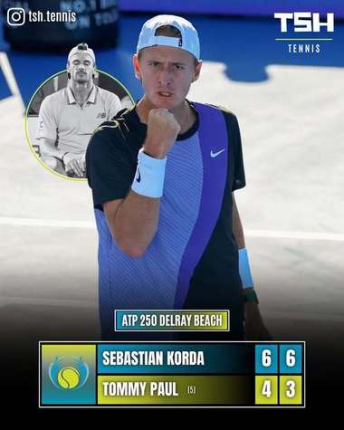 Americanul Sebastian Korda, numărul 50 mondial, a câştigat, duminică, turneul ATP 250 de la Delray Beach (Florida), al treilea titlu din cariera sa, învingându-l pe compatriotul său Tommy Paul (nr. 24), scor 6-4, 6-3.