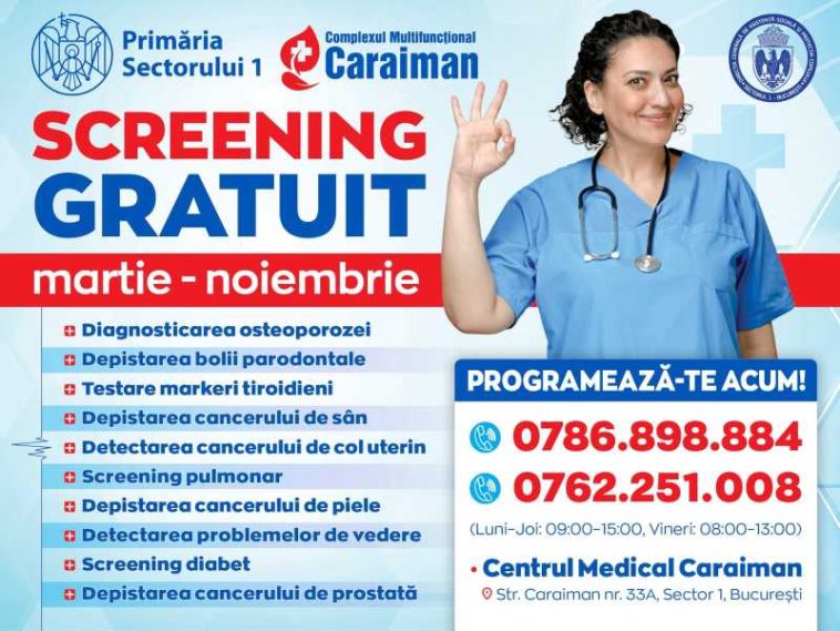 Locuitorii din Sectorul 1 vor beneficia și în acest an de screening gratuit la Complexul Medical Caraiman, în cadrul campaniei ‘Fă-ți timp pentru sănătate. Testează-te!’.