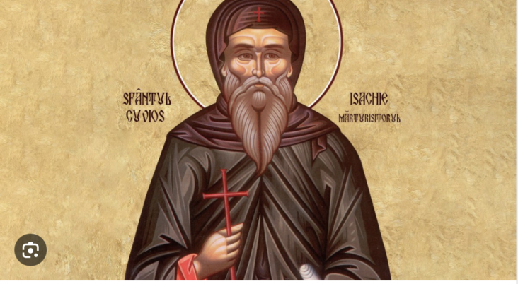 Sfântul Cuvios Isaachie Mărturisitorul a trăit în secolul al IV-lea, într-o perioadă dificilă pentru Biserică, marcată de persecuții împotriva celor care urmau învățăturile de la Niceea. Aceste persecuții erau provocate de erezia ariană, susținută de împăratul Valens (364-378). La început, Sfântul Isaachie a ales viața ascetică în pustiul răsăritean, urmând exemplul Sfântului Proroc Ilie. Auzind însă de suferințele îndurate de ortodocși, a părăsit pustia și a mers la Constantinopol, hotărât să-i întărească pe credincioși și să se opună politicii împăratului.