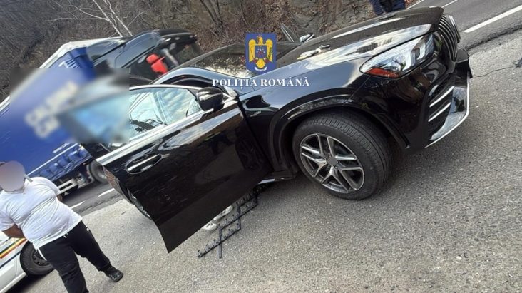 După oprirea forţată a vehiculului, bărbatul a manifestat un comportament agresiv, fiind imobilizat şi încătuşat de poliţişti.