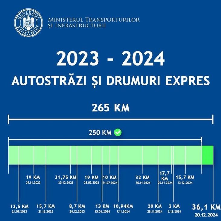 - 228,94 km au fost deschişi în perioada septembrie 2023 – decembrie 2024.