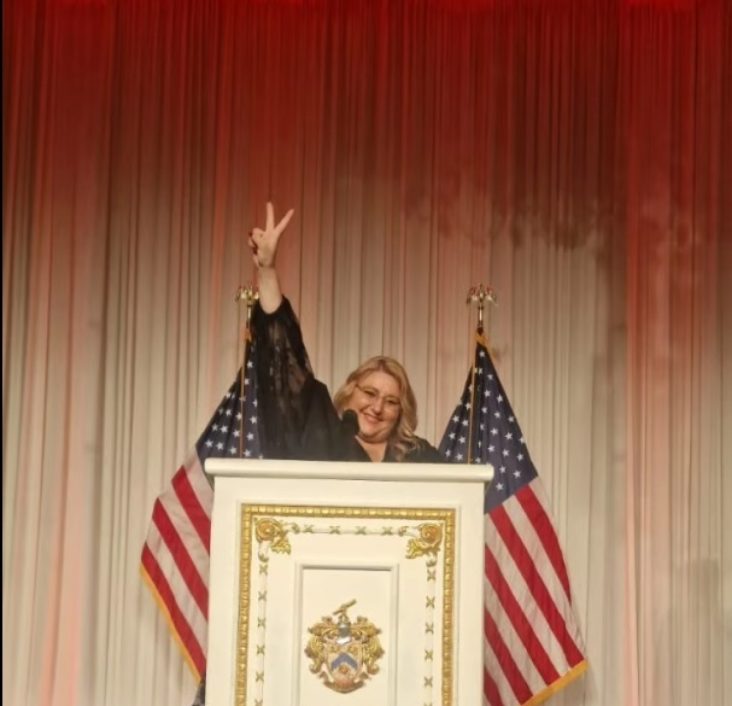 Diana Şoşoacă a făcut live-uri de la faţa locului, atât de la cockteilul galei, cât şi de la dineul oficial din sala de recepţii a reşedinţei.