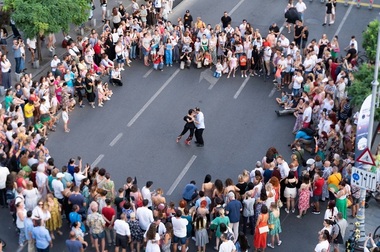 Peste zece stiluri de dans – de la salsa, tango argentinian şi bachata, la dansuri populare româneşti, belly dance, shuffle dance sau lindy hop – vor anima seara prin demonstraţii spectaculoase, flashmob-uri şi momente de community dance, invitând publicul să se alăture energiei dansului.