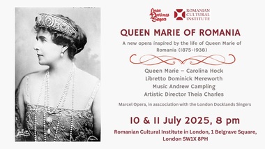 Spectacolul de operă „Queen Marie of Romania”, creaţie inedită a compozitorului Andrew Campling, a libretistului Sir Dominick Mereworth şi a regizoarei Theia Charles, va fi prezentat la ICR Londra în 10 şi 11 iulie.