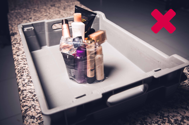 - produse cosmetice: pastă de dinţi, gel de păr, parfumuri, spumă de ras, şampon/balsam, cremă/loţiune, fixativ, spumă pentru păr, spray-uri, mascara, fond de ten, ruj lichid etc.;