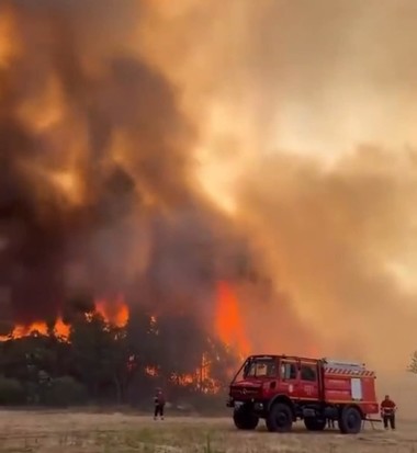 A large fire in Lindoso, Portugal, near the Spanish border, has injured a firefighter and destroyed a home. Burning since Saturday night in the Peneda-Gerês National Park, the blaze is threatening homes and overwhelming crews