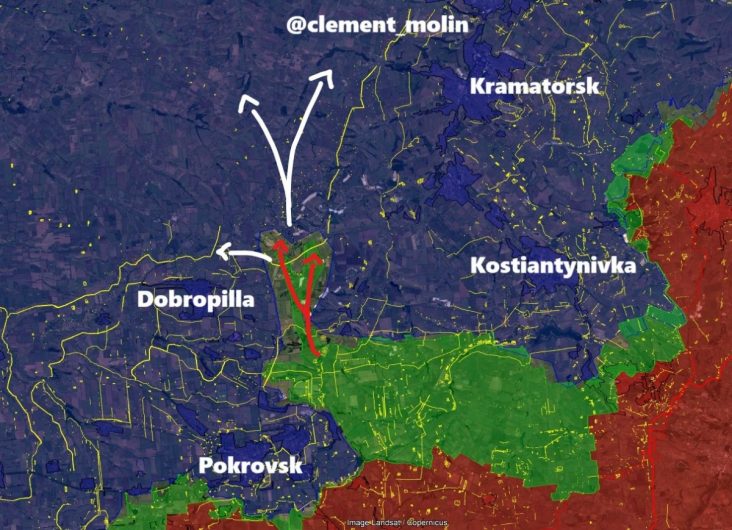 Potrivit surselor ucrainene, în special bloguri militare, mici grupuri de infanterie ruse au pătruns pe două culoare înguste pe o distanţă de circa 10 kilometri către principala linie defensivă a armatei ucrainene din apropierea oraşului garnizoană Dobropilia. Această situaţie a provocat temeri cu privire la o străpungere rusească mai amplă care să ameninţe mai multe oraşe cheie şi chiar întreaga parte a provinciei Doneţk rămasă sub control ucrainean.