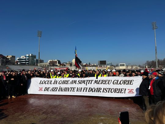 ”Locul în care am simţit mereu glorie, de azi înainte va fi doar istorie”, a fost un banner afişat de suporteri, în frunte cu oficialul CS Dinamo, Ionuţ Lupescu.