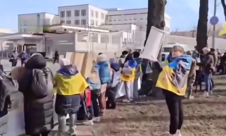 Sute de ucraineni manifestează în faţa sediului Ambasadei SUA la Kiev şi cer întoarcerea prizonierilor acasă