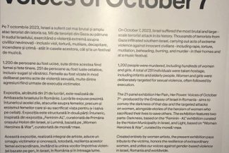 Peste 400 de voci din scena artistică cer explicaţii Art Safari cu privire la expoziţia “Her Pain, Her Power: Voices of October 7th”: “Expoziţia rămâne tăcută în faţa realităţilor catastrofale cu care se confruntă femeile şi fetele palestiniene”