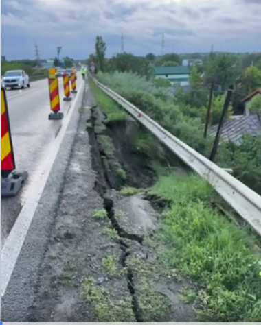 O bucată de teren s-a surpat, marţi, pe DN 2B, în judeţul Brăila, iar drumarii au impus restricţii pentru siguranţa traficului.