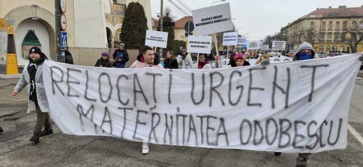 Aproximativ 100 de persoane, medici, asistente, moaşe şi paciente, patricipă, joi, la un protest prin care cer reprezentanţilor Primăriei Timişoara să găsească o soluţie pentru a-şi continua activitatea, după ce Maternitatea Odobescu a fost închisă la începutul lunii decembrie, în urma prăbuşirii unui tavan.