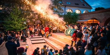 La 20.45 va avea loc un concert acustic de muzică veche cu instrumente medievale, iar la 21.00 în Curtea Bastionului are loc întoarcerea schimbului de gardă cu salve de tun.