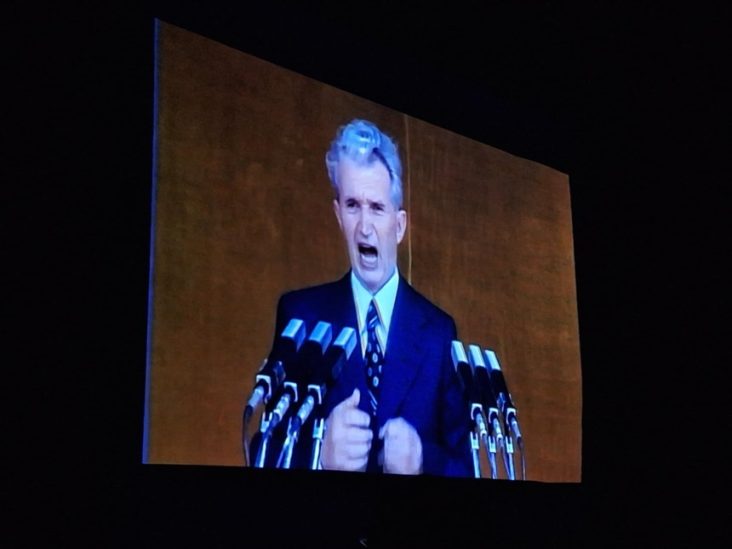 „N-aţi dat ce trebuia. Toată adunarea a fost perturbată prin faptul că s-au transmis prin lungimi de unde joase explozii, tancuri, aruncare de bombe… Iar populaţia a căzut în genunchi. Nu au strigat cei care erau în Piaţă „Jos Ceauşescu”, au venit brigăzile care au demonstrat şi au intrat în Piaţă. Oamenii aceştia, când le-a spus că le măreşte salariul, nu au spus aşa. Deci, un neadevăr. Dacă domniile voastre voiaţi să spuneţi un adevăr, trebuia să arătaţi că într-o perioadă de 25 de ani, eu nu sunt nici adeptul lui Ceauşescu, nici al celor care au venit după el, dar s-au făcut şi nişte lucruri minunate, trebuia să arătăm şi lucrurile bune. S-au dat în context numai lucrurile pe care le-aţi vrut dumneavoastră,. Îmi pare rău, dar trebuia să-l descriem în adevărata lui lumină fiindcă el a fost un patriot”, a spus un spectator la microfon.