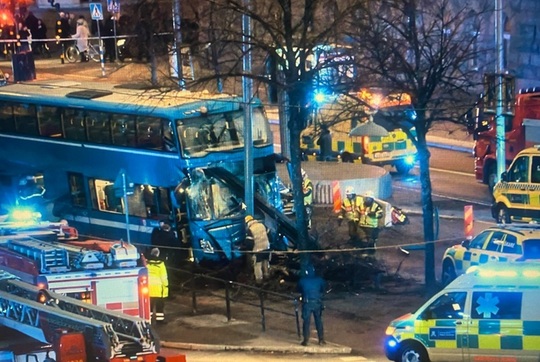 Vineri, după ora locală 15.00 (17.00, ora României), un autobuz ”imperial” – care circula gol – a lovit o coadă de aşteptare într-o staţie de autobuz, pe o arteră aglomerată, în centrul capitalei suedeze, a răsturnat pietoni şi două adăposturi de autobuz, înainte să se oprească.