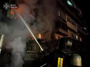 În cartierul Obolonski, resturi de drone au căzut pe un bloc de 16 etaje, potrivit primarului din Kiev.