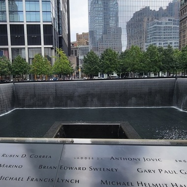 Situat în partea de sud a Manhattanului, locul unde turnurile gemene ale World Trade Center au fost distruse de avioane deturnate în 11 septembrie 2001, complexul include două bazine comemorative înconjurate de cascade şi parapete pe care sunt inscripţionate numele victimelor, precum şi un muzeu subteran. De la deschiderea pentru public în 2014, piaţa memorială şi muzeul au fost administrate de o organizaţie caritabilă publică, prezidată în prezent de fostul primar al oraşului New York, Michael Bloomberg, un critic frecvent al lui Trump.