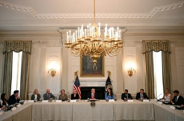 El era aşezat, la fel ca ceilalţi invitaţi, în jurul unei mese mari, în formă de ”U”, alături de Donald Trump şi mai mulţi membri din Guvernul său.