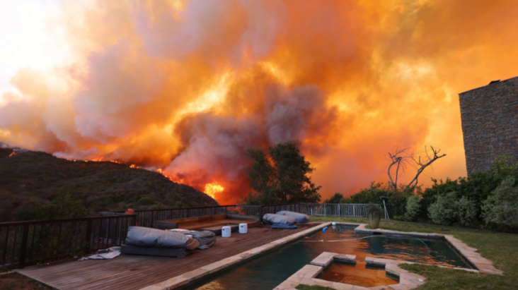 Incendiul a izbucnit în timp ce Los Angeles-ul era măturat marţi de rafale de vânt deosebit de violente: vânturile calde Santa Ana, tipice iernilor californiene, pot sufla cu viteze de până la 160 km/h, potrivit serviciului meteorologic american (NWS). Acest lucru va răspândi flăcările foarte rapid şi va face sarcina pompierilor mult mai dificilă.