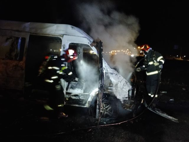 Un microbuz a luat foc lângă şoseaua de centură din Arad / Două persoane au suferit arsuri
