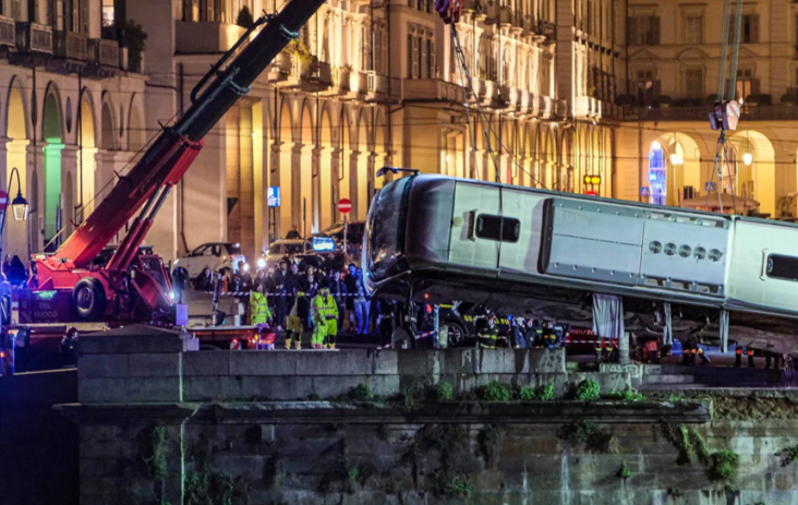 Torino, un bus turistico precipita nel Po in pieno centro: morto l’autista, era l’unico a bordo. L’uomo è stato soccorso ma non ce l’ha fatta, feriti anche 3 passanti.