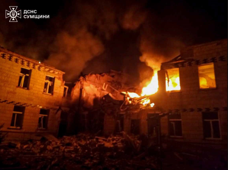 Radio Svoboda shared video of consequences of the Russian drone strike targeting a hospital in Sumy.