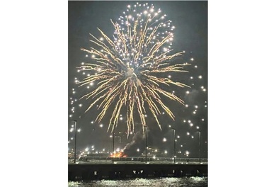 Potritvit unor imagini difuzate de postul NHK, o barjă a luat foc luni seara în largul Yokohama, un oraş situat la sud de Tokyo, iar explozii roze şi albe zburau în toate direcţiile.