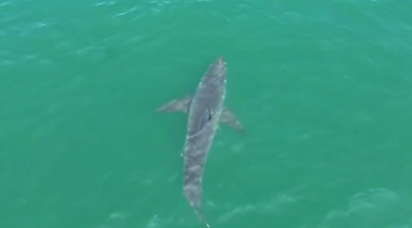 Pescarul comercial de scoici David Lancaster a reuşit să filmeze cu drona rechinul înotând chiar sub suprafaţă, cu aripa sa gri ieşind din valurile line. El a spus că a fost ”magnific” să vadă rechinul mare, chiar dacă a fost puţin surprins.