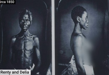 Un sclav, cunoscut doar prin prenumele Renty şi fiica sa, Delia, apar într-o imagine degradantă, în parte goi.