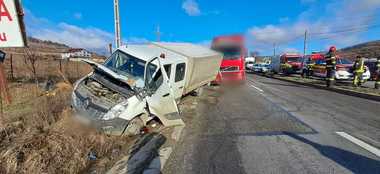 În urma impactului, autoutilitara a fost proiectată în afara părţii carosabile.