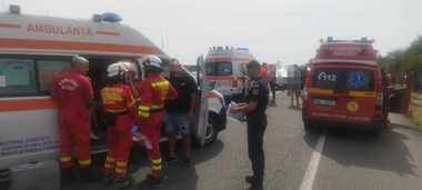 Primele informaţii de la faţa locului arată că opt persoane sunt implicate în evenimentul rutier, printre acestea numărându-se şi minori.