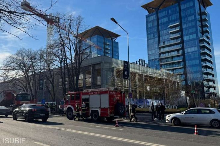 Pompierii bucureşteni intervin, miercuri, pentru extragerea unei persoane care s-ar fi aflat într-un utilaj peste care s-a prăbuşit o placă de beton, pe un şantier de pe Calea Floreasca, Bucureşti.