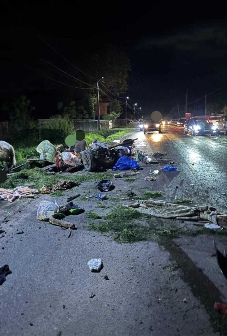Accidentul rutier s-a produs înainte de miezul nopții în satul Topolița din comuna Grumăzești. În accident au fost implicate o mașină în care se afla doar șoferul și o căruță care transporta 10 persoane.