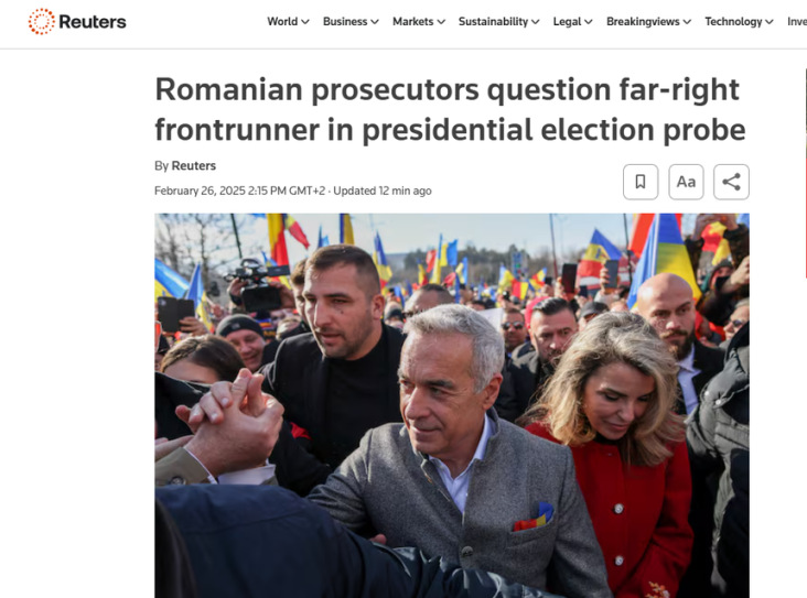 Georgescu, care i-a lăudat pe liderii fascişti ai României din anii 1930 şi şi-a exprimat admiraţia atât pentru preşedintele american Donald Trump, cât şi pentru preşedintele rus Vladimir Putin, rămâne principala opţiune a alegătorilor în sondajele de opinie înainte de reluarea alegerilor, în mai, deşi rămâne neclar dacă i se va permite să candideze, arată Reuters.