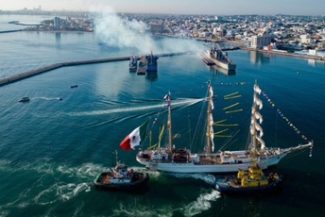 Nava-şcoală velier mexicană Cuauhtémoc,care s-a lovit în mai de Podul Brooklyn, participă după reparaţii la un eveniment