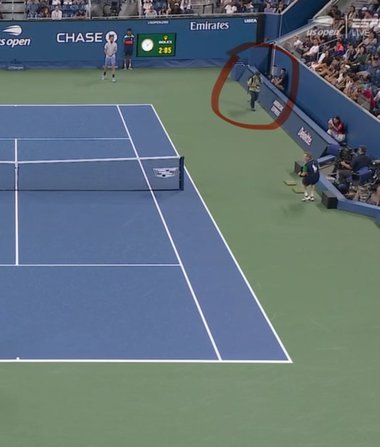 El susţine, de asemenea, că a primit ordinul de a intra prematur pe teren, deşi ezitase să o facă. „Dacă există o cameră de filmat, imaginile vor arăta că m-am întors de două ori la oficial şi că nu am intrat.” Agentul de securitate i-ar fi spus atunci că „meciul a fost oprit” şi l-ar fi îndemnat să intre pe teren în timp ce Bonzi se pregătea pentru al doilea serviciu.