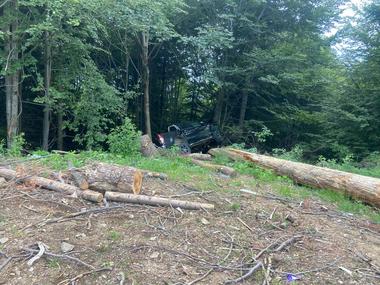 O femeie şi doi copii au ajuns la spital, sâmbătă seară, după ce autoturismul în care se aflau şi care era condus de o femeie, a ieşit de pe şosea şi s-a răsturnat, rămânând suspendat pe trunchiul unui copac.