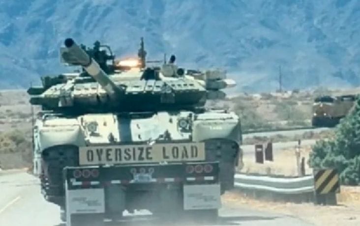 Украинский танк Т-84 «Оплот» в Аризоне едет с испытательного полигона Юма pic.twitter.com/G37dyLkdDA
