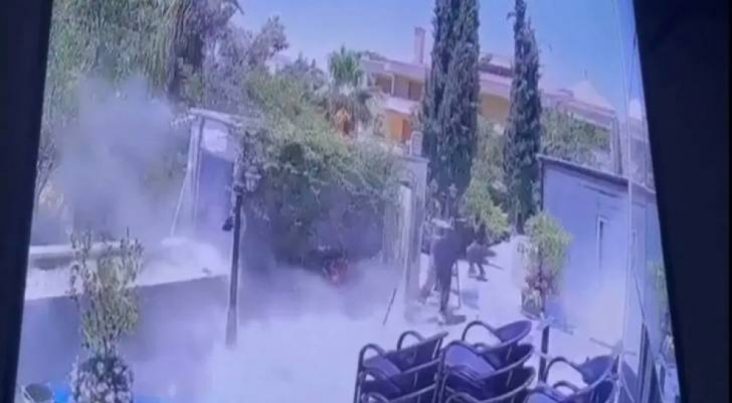 Footage from a security camera shows the moment that a drone launched by Iran crashed earlier today in the Jordanian capital of Amman, nearly injuring two bystanders. pic.twitter.com/qcvDhDAc5Z