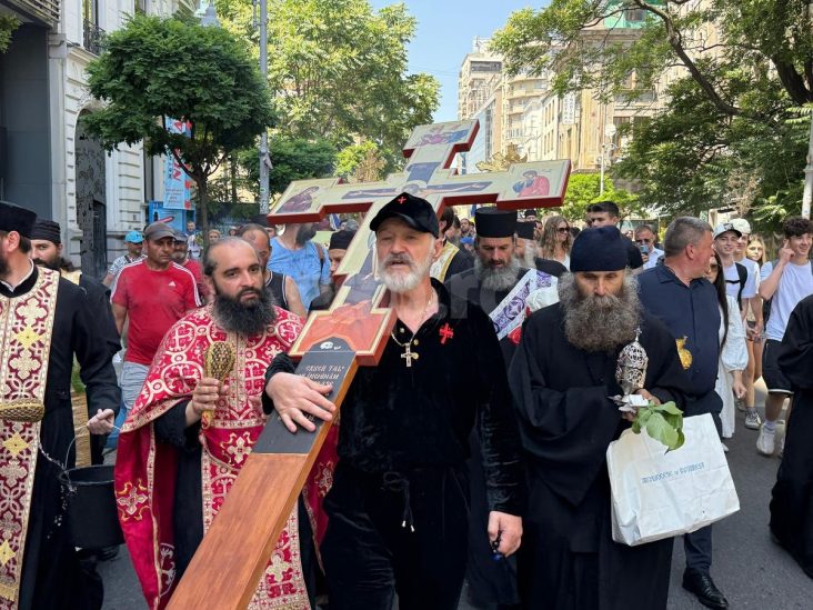 În jurul orei 13:00, însoțit de călugări, Gigi Becali a apărut purtând o cruce de dimensiuni mari, cu care a sfințit zona, afirmând că dorește să o curețe de „energiile necurate” lăsate de participanții la Pride. Trecătorii de pe Calea Victoriei s-au oprit surprinși de această manifestație, unii dintre ei alegând să filmeze sau să facă fotografii.