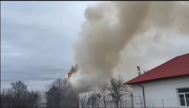 VIDEO O biserică din Argeș a luat foc în timpul slujbei de Crăciun: Opt autospeciale intervin la fața locului