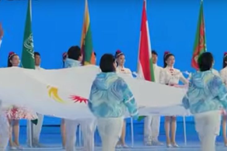 Pe fondul aplauzelor publicului, vedeta patinajului viteză Ning Zhongyan și schioarea Liu Mengting, care a făcut istorie prin câștigarea medaliei de aur la feminin la Cupa Mondială de schi liber în ianuarie a purtat drapelul național în timpul paradei sportivilor.