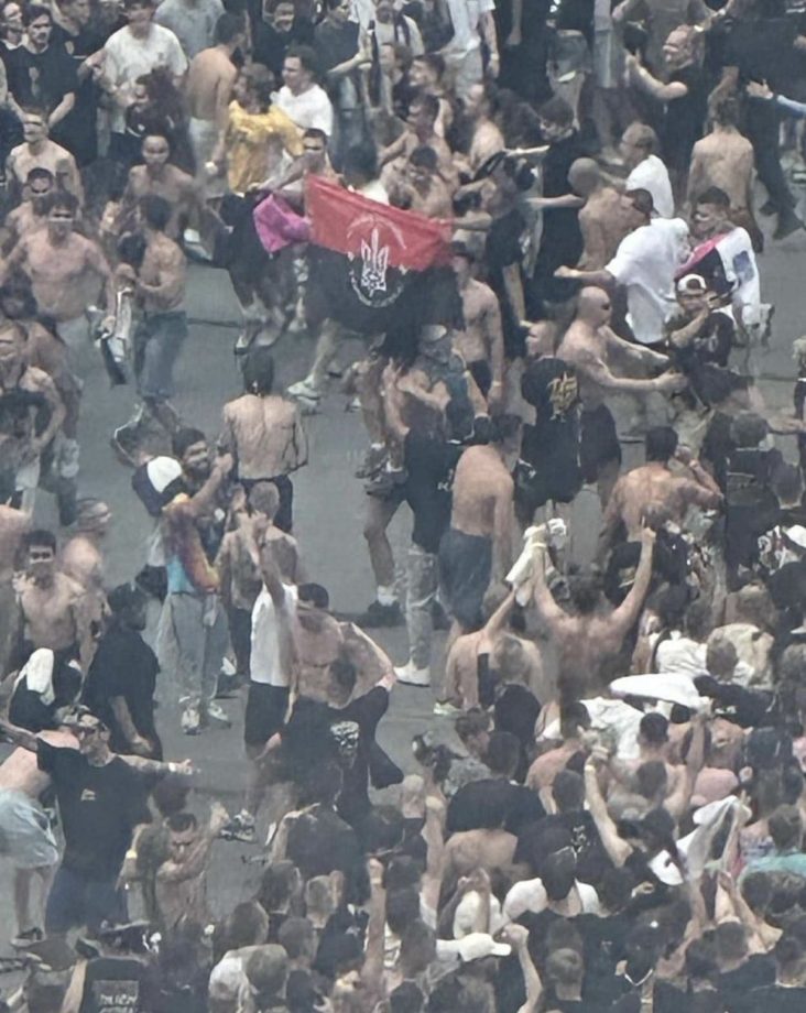 O controversă majoră a fost stârnită de prezența unui participant care a afișat un drapel negru-roșu, asociat în mod obișnuit cu Armata Insurecțională Ucraineană (UPA) din perioada celui de-al Doilea Război Mondial.