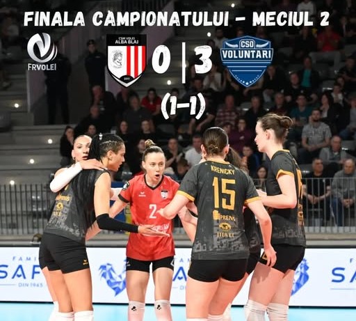 CSO Voluntari 2005 a învins-o pe CSM Volei Alba-Blaj cu scorul de 3-0 (25-20, 25-22, 25-23), marți seara, la Blaj, în al doilea meci finalei Diviziei A1 la volei feminin.