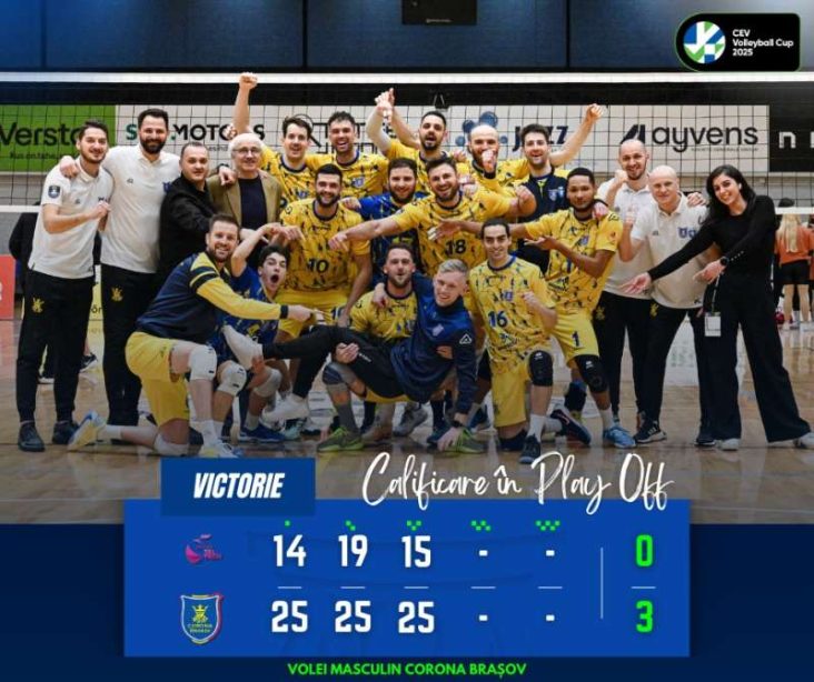 CSM Corona Braşov s-a calificat fără probleme în play-off-ul Cupei CEV la volei masculin, după ce a învins în deplasare formaţia estoniană Selver x Taltech Tallinn, cu scorul de 3-0 (25-14, 25-19, 25-15), marţi seara, în returul optimilor de finală.