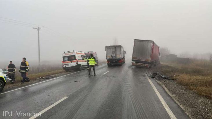 “În acest moment, poliţiştii rutieri intervin la un eveniment rutier sesizat prin apel 112 la ora 08,16, produs pe DN 24 (Tişiţa). Din primele informaţii, a avut loc o coliziune între un autocamion şi un autoturism. Din nefericire, conducătorul autoturismului a decedat”, au precizat reprezentanţii IPJ Vrancea.