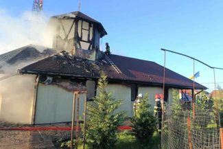 O biserică din lemn din Timiş a ars în totalitate/ 28 de pompieri au intervenit pentru stingerea focului – FOTO., VIDEO