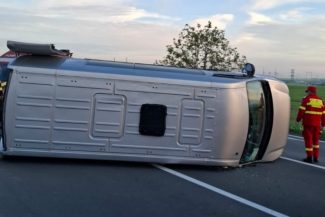 FOTO Microbuz cu ucraineni, răsturnat pe DN 2A